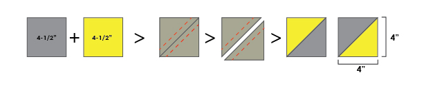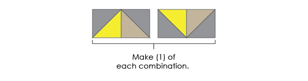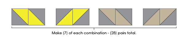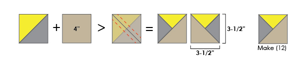 a) Make (4) HST units from your Fabric C & D 2-1/2” squares. Their finished dimensions should be 2” square.