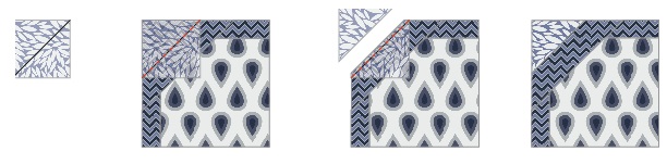 7. Draw a diagonal corner-to-corner line on the Wrong Side of each 3” Fabric A-D square.