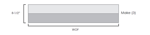 1. Sew your Fabric B – C strips together as shown to make (3) WOF x 8-1/2” units.