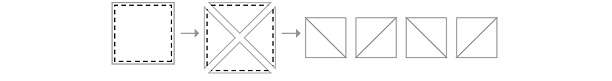 2. Cut the squares into (4) triangles as shown and open them up to make (4) HST units.