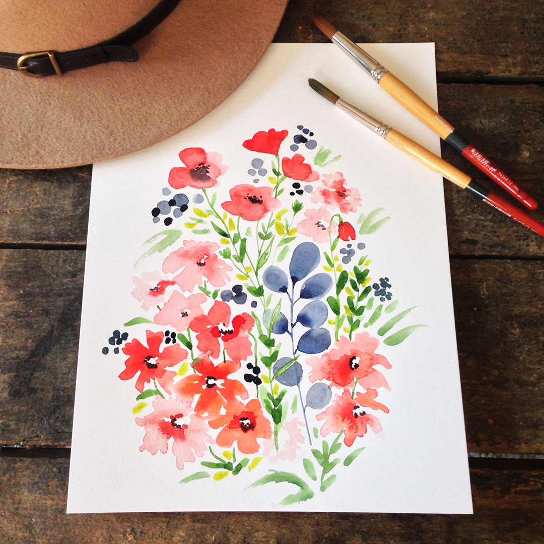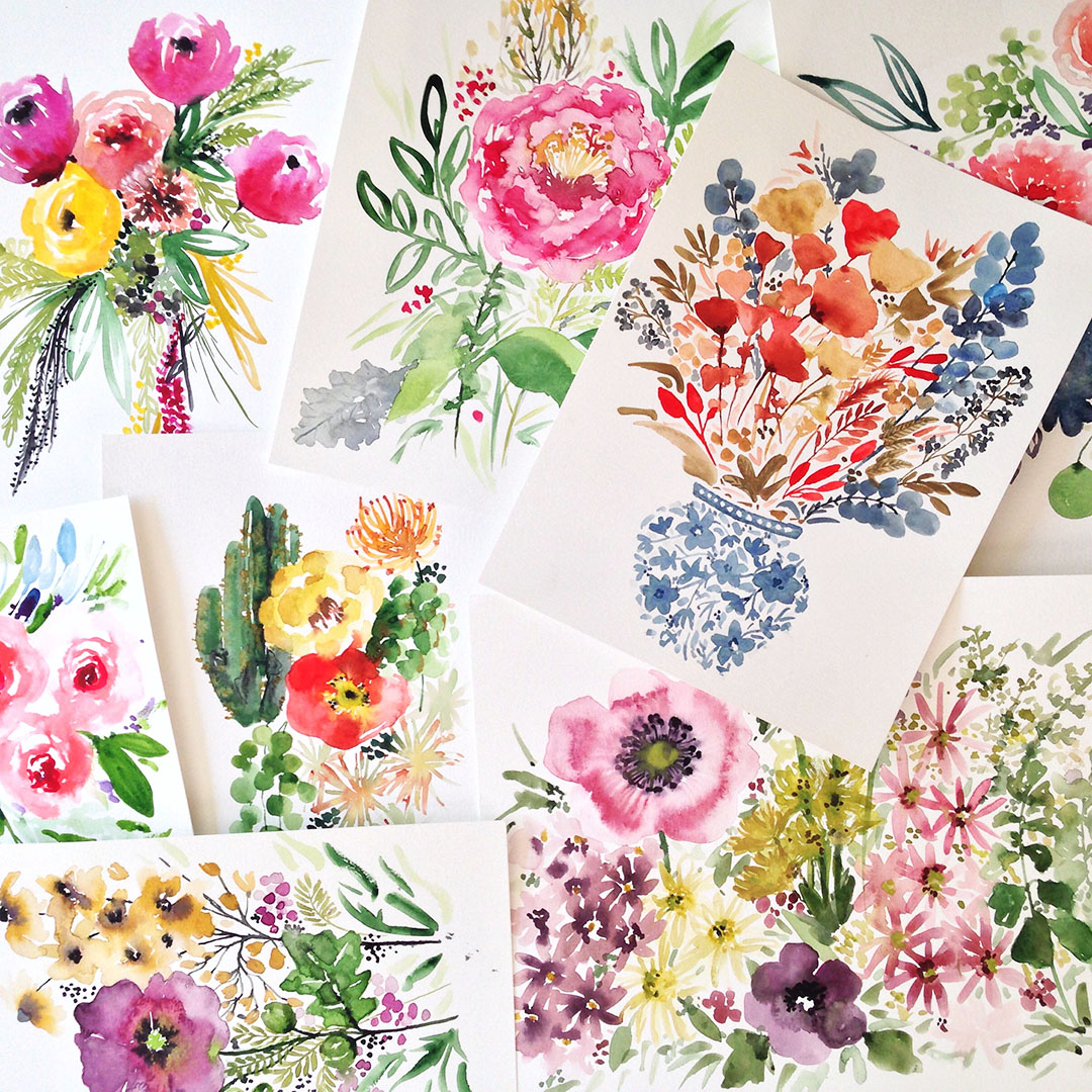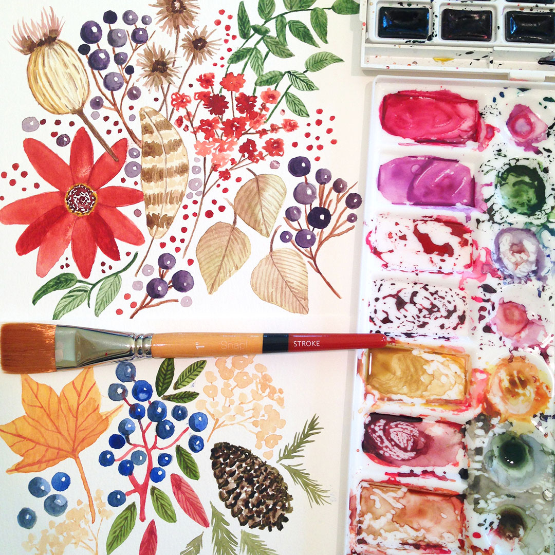 SB: I paint mainly in watercolor, which can be a very unpredictable medium. But that is actually what I love about it. I love the blending and bleeding of colors and the happy accidents that result. It is fun to experiment with the paint and let it do it’s thing. I gravitate toward designs that are hand made and look unique and not computer generated. I feel that by painting my art, it gives it that hand made quality which I admire and it really feels one of a kind.