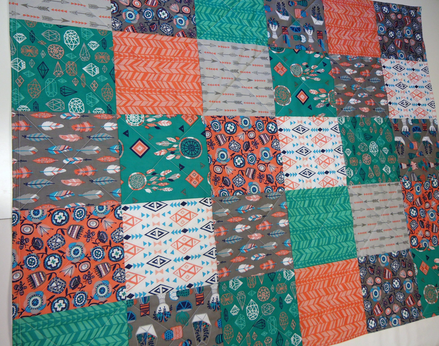 It’s time to end this week with our Fan Friday! Today we are featuring a super sweet baby quilt by Calamari Quilts, featuring our Folklore by Heather Rosas Collection. Calamari Quilts is an Etsy Shop dedicated to beautiful, handmade quilts. Mother-daughter, sewing duo Mary and Michelle are the creatives behind Calamari Quilts, both with a love for quilting, sewing, and creating high quality items. Inspired by the scenic views around her home and studio, Michelle creates quilts based on the beauty she sees everyday. When her daughter was born, she was given thirteen handmade blankets, and wants to pass along the special-ness she felt to other new mommies.